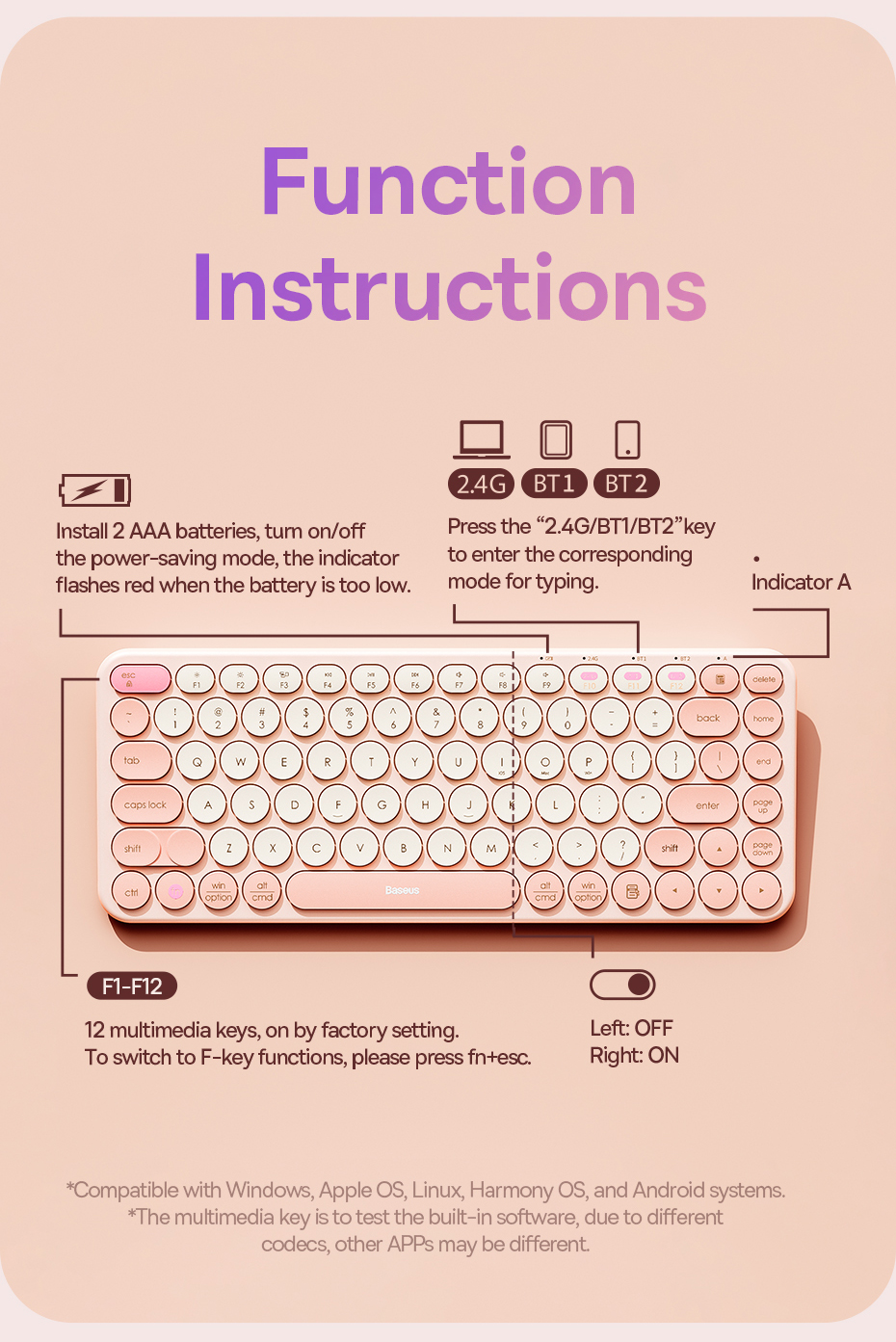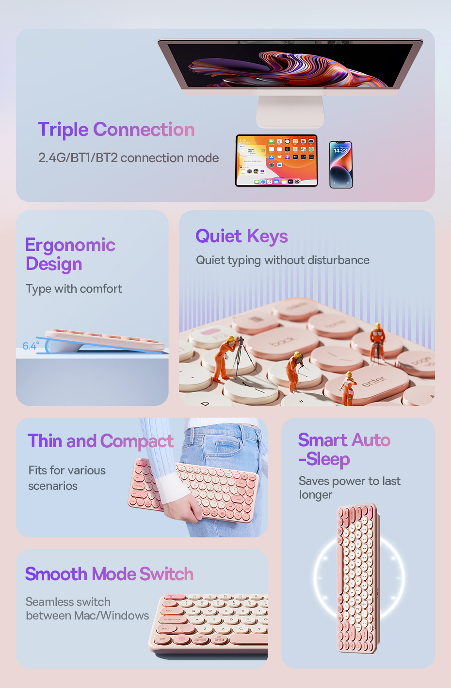 Bàn phím không dây OS-Baseus K01 là thiết bị nhập liệu hiện đại, hỗ trợ ba chế độ kết nối gồm Bluetooth 5.0, kết nối 2.4GHz và Bluetooth 3.0, mang lại sự linh hoạt và tiện lợi trong mọi môi trường làm việc. Với thiết kế tinh tế, gọn nhẹ cùng khả năng tương thích cao, sản phẩm phù hợp cho cả công việc văn phòng lẫn nhu cầu di chuyển.