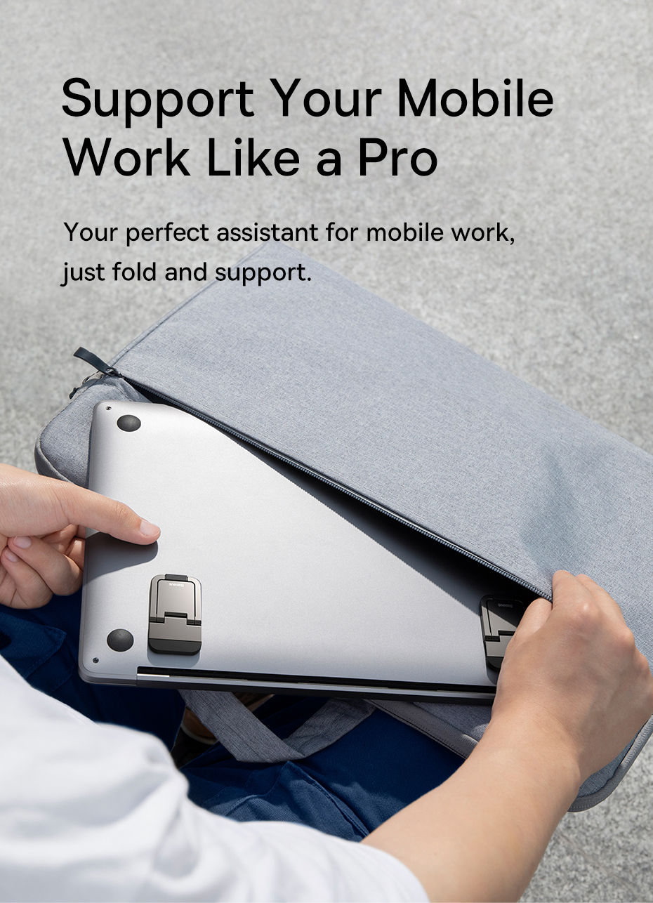 🤏 Siêu Mỏng & "Vô Hình": Khi không sử dụng, hai chân đỡ có thể gập lại phẳng hoàn toàn vào đáy máy. Với thiết kế siêu mỏng và nhẹ, bạn gần như không cảm thấy sự tồn tại của chúng, không gây cộm hay vướng víu khi cho laptop vào túi xách.
