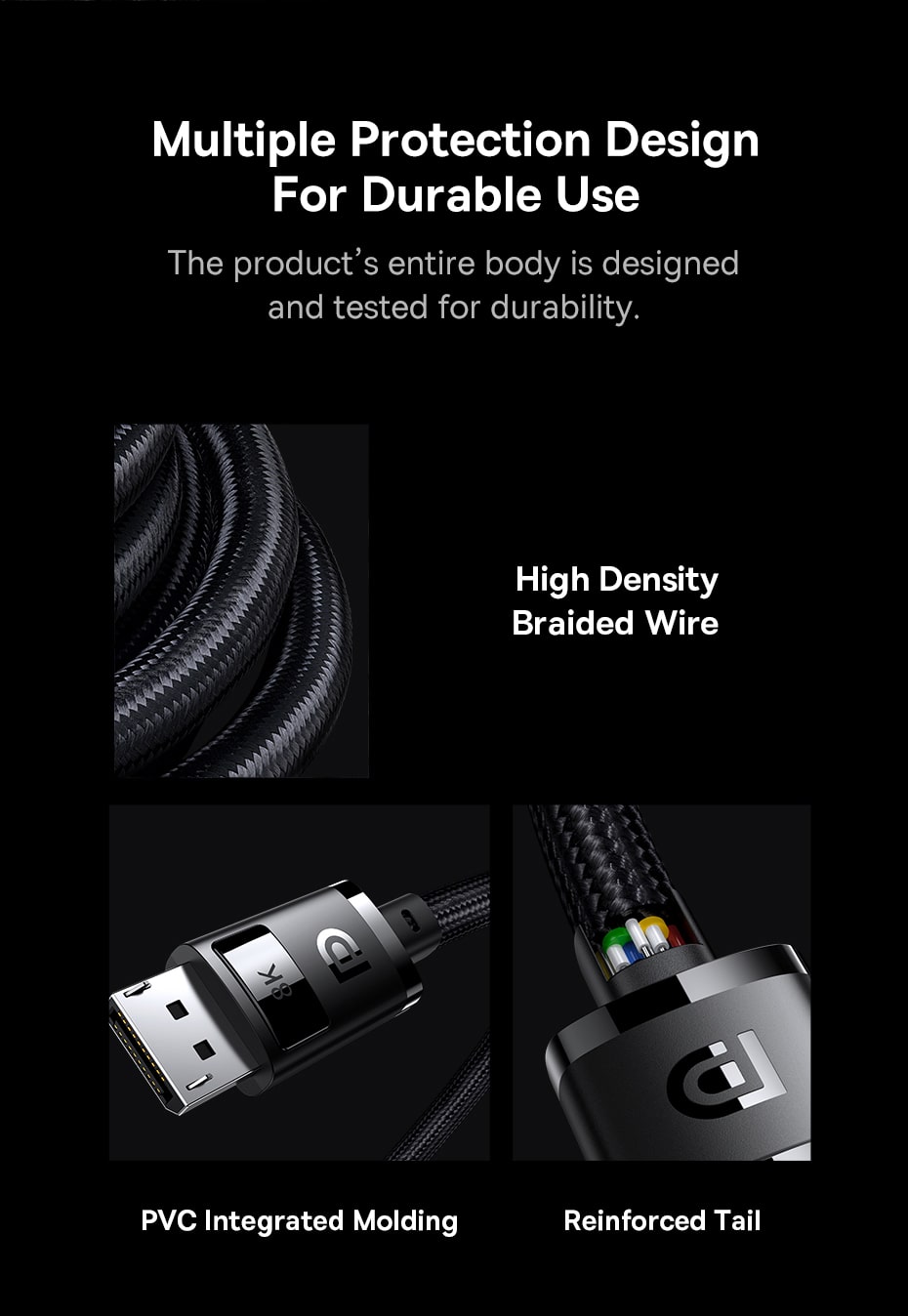 Khai phóng toàn bộ sức mạnh của màn hình và card đồ họa của bạn với Cáp DisplayPort 1.4 8K từ Baseus. Được thiết kế chuyên biệt cho game thủ chuyên nghiệp và nhà sáng tạo nội dung, sợi cáp này mang lại chất lượng hình ảnh siêu nét và tần số quét mượt mà chưa từng có.