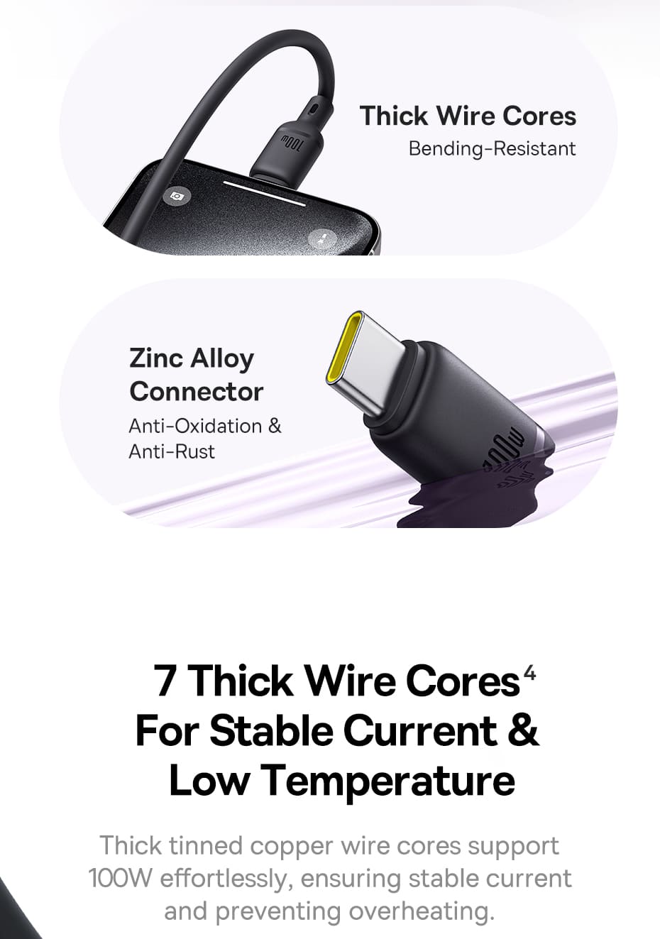 🛡️ Lõi Dày, Sạc An Toàn & Mát Mẻ: Với 7 lõi dây đồng dày bên trong, cáp đảm bảo truyền tải dòng điện lớn một cách ổn định, chống quá nhiệt và bảo vệ an toàn tối đa cho các thiết bị của bạn trong quá trình sạc.