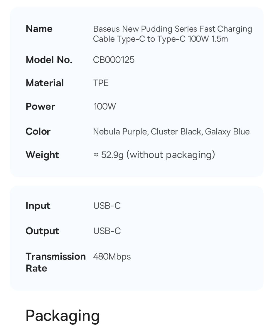 | Tên | Cáp Sạc Nhanh Baseus Silky Series Fast Charging Cable Type-C to Dual Type-C 100W |