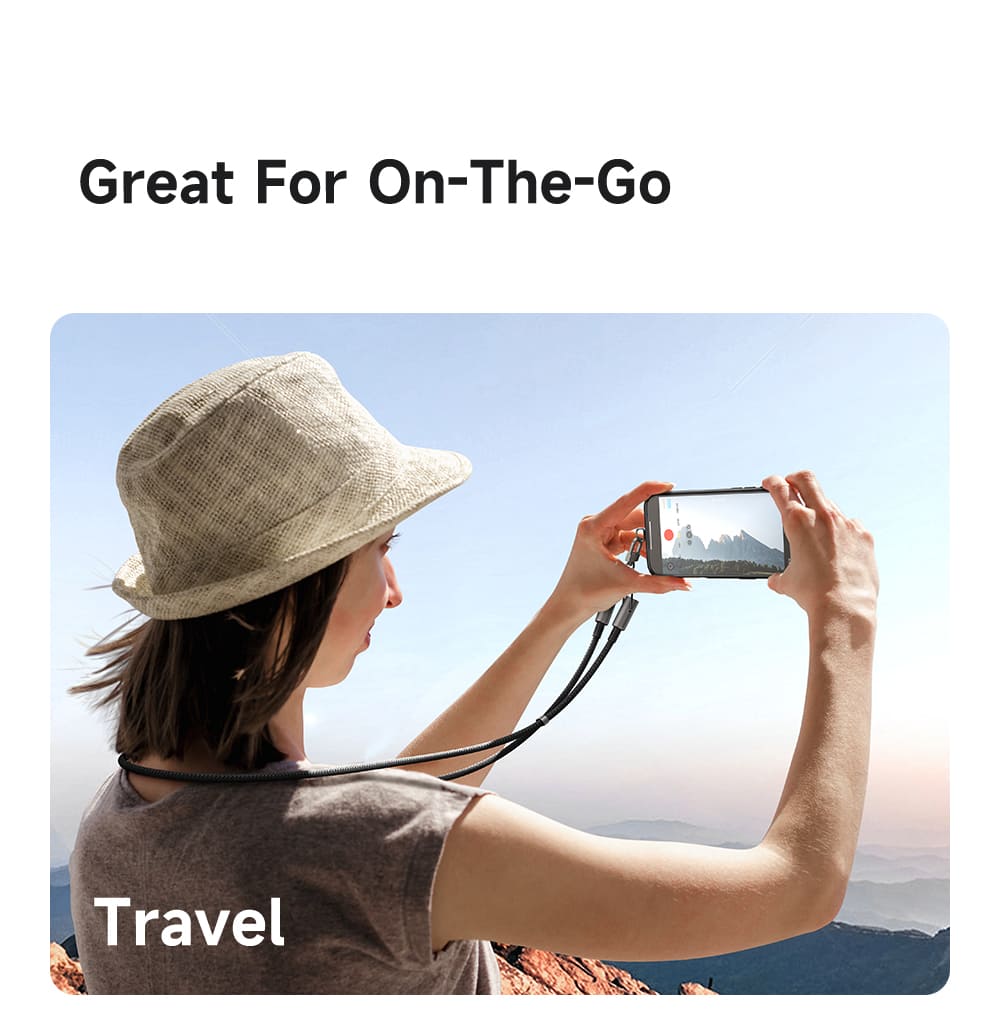 💡 Thiết Kế "2 TRONG 1" Độc Đáo - Luôn Sẵn Sàng: Điểm đặc biệt nhất của sợi cáp này là thiết kế dây dù dài, cho phép bạn đeo chéo như một phụ kiện. Nhờ đó, bạn sẽ không bao giờ quên cáp sạc ở nhà hay bỏ quên ở quán cà phê nữa! Khi không sạc, nó trở thành một dây đeo tiện lợi giúp bạn rảnh tay và bảo vệ điện thoại.
