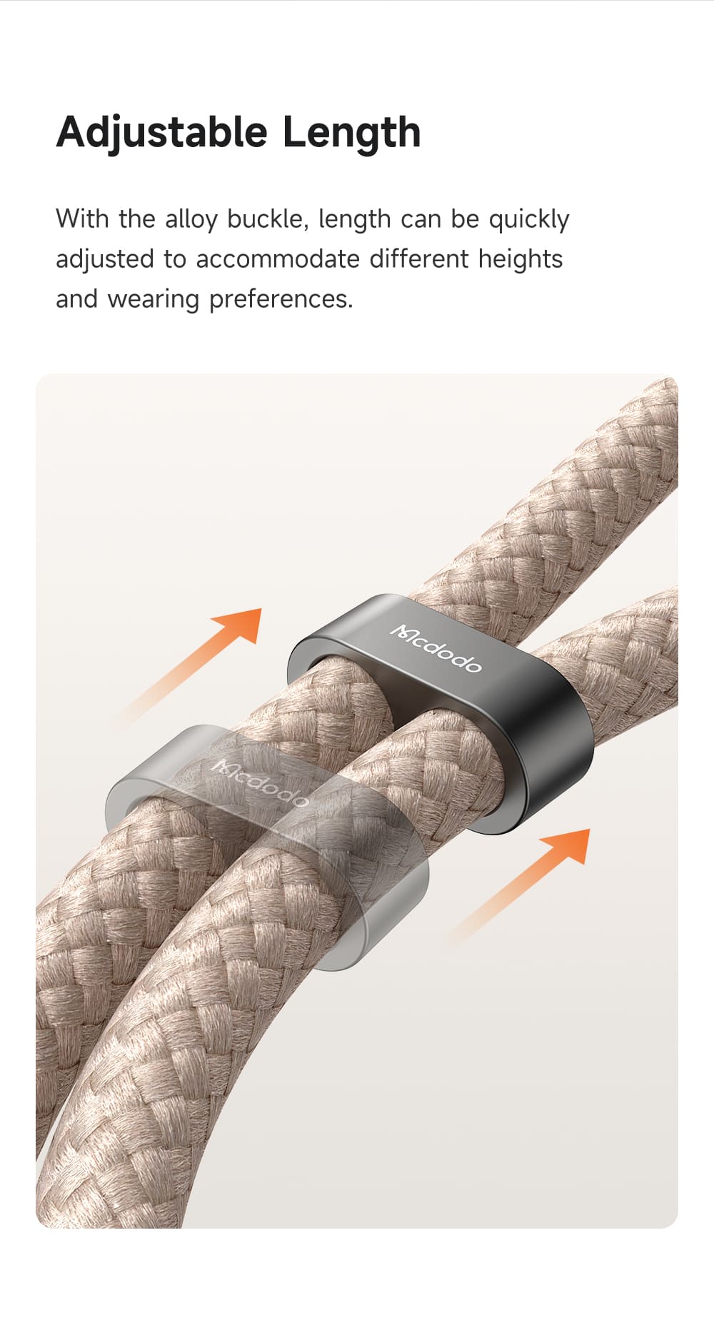 ○ Thiết kế: Có khóa kim loại để điều chỉnh độ dài dây khi cần.