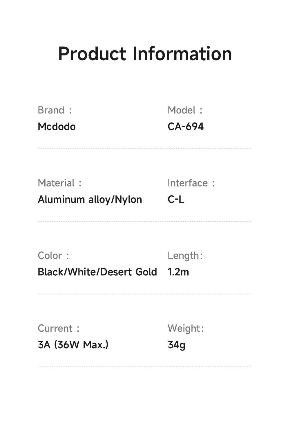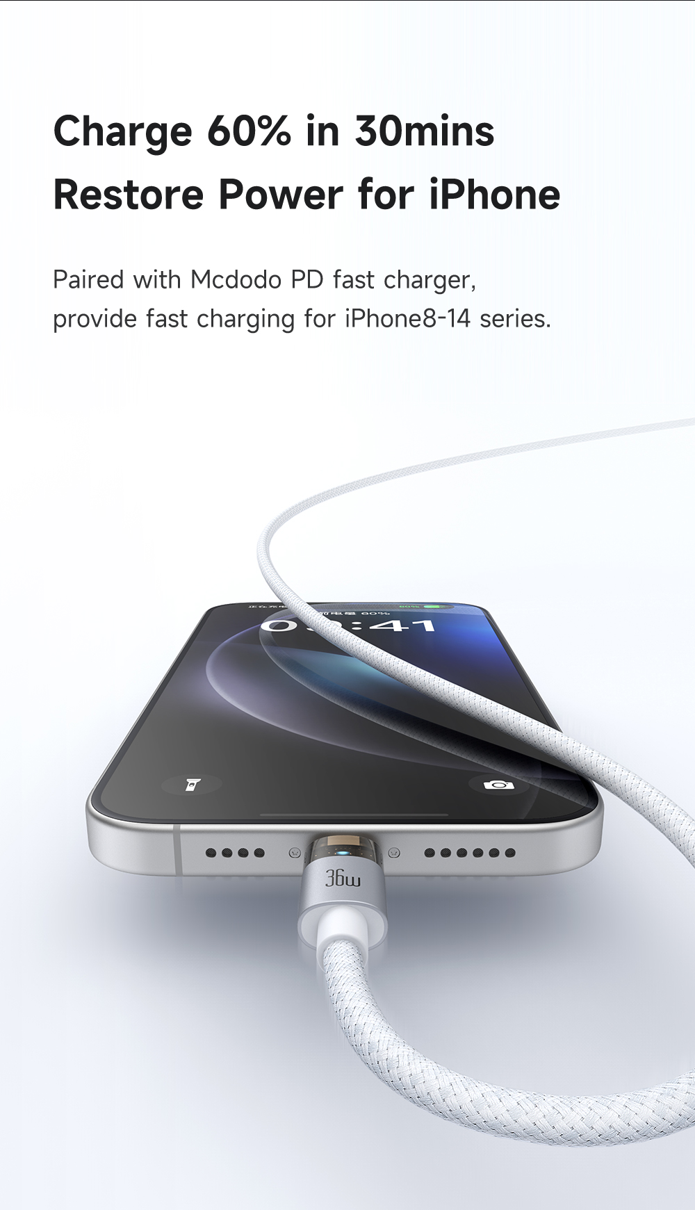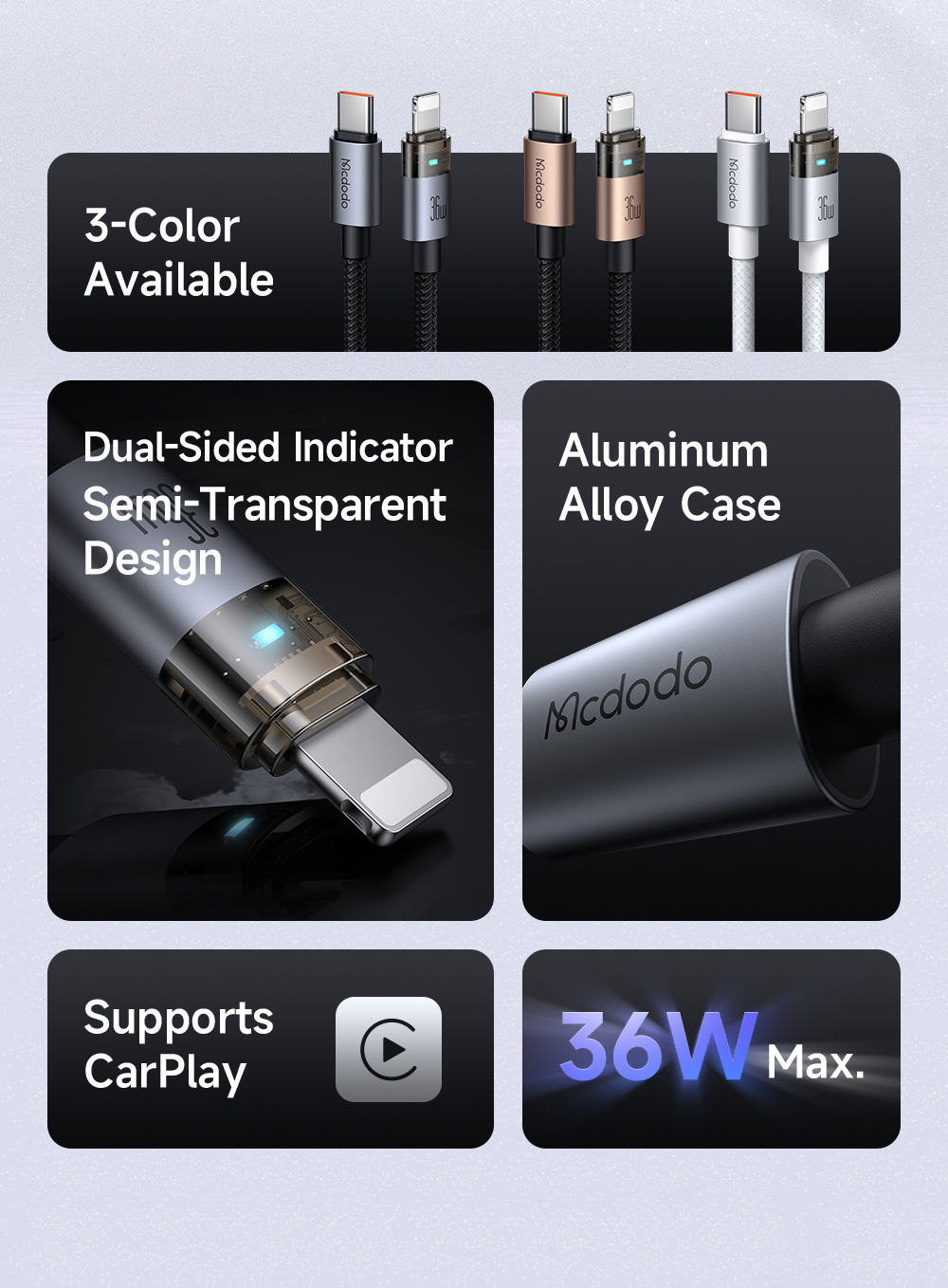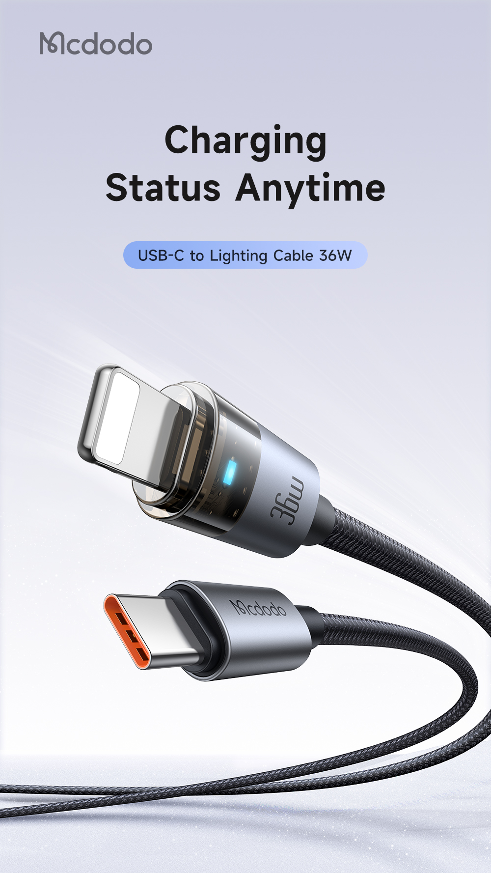 | Tên | Cáp Sạc Nhanh Mcdodo Type-C to iP 36W Transparent Cable with Charging Light |