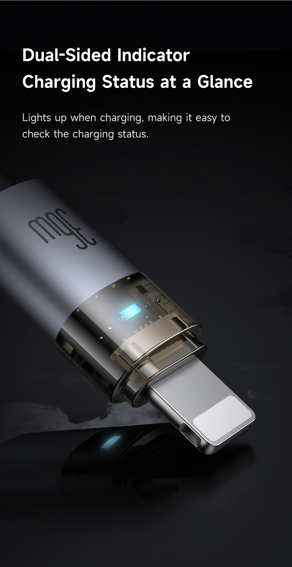 💡 Đèn LED Báo Sạc Hai Mặt: Tích hợp đèn LED báo hiệu ở cả hai mặt của đầu cắm, giúp bạn dễ dàng xác nhận trạng thái sạc từ mọi góc độ và tăng thêm vẻ đẹp công nghệ cho sợi cáp.