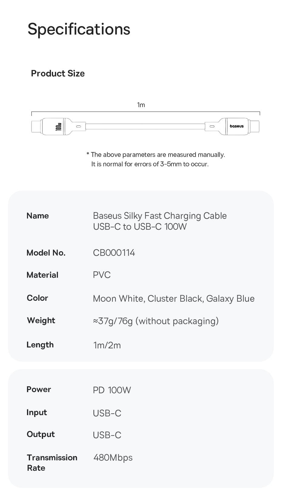 | Tên | Cáp Sạc Nhanh OS-Baseus Silky Series Fast Charging Cable Type-C to Type-C 100W |