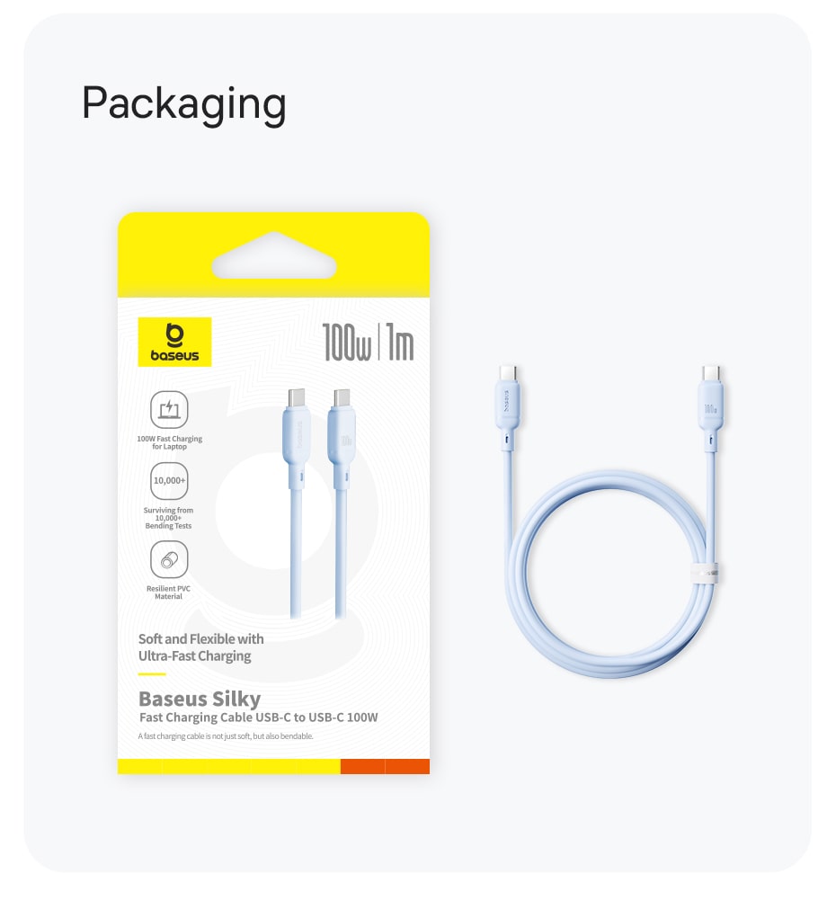 Trải nghiệm sự khác biệt với cáp sạc Baseus Silky Series. Được làm từ vật liệu PVC cao cấp siêu mềm, sợi cáp mang lại cảm giác mượt mà khi sử dụng, kết hợp hoàn hảo với hiệu năng sạc siêu nhanh mạnh mẽ, là một phụ kiện vừa bền bỉ vừa phong cách cho mọi thiết bị Type-C của bạn.