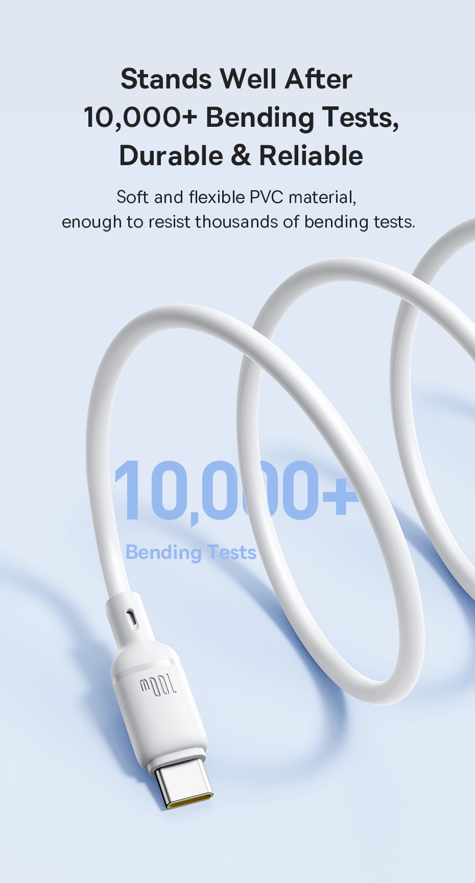 🍮 Chất Liệu Mềm Mại, Chống Rối Vượt Trội: Vỏ cáp được làm từ vật liệu PVC cao cấp, cho cảm giác cầm nắm cực kỳ mềm mại và mượt mà. Đặc tính dẻo dai của vật liệu giúp cáp có khả năng chống rối vượt trội, dễ dàng cất giữ.