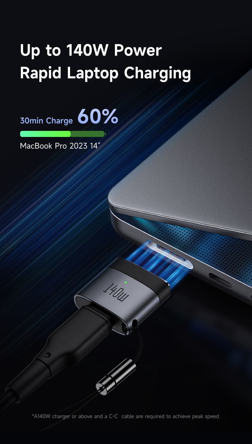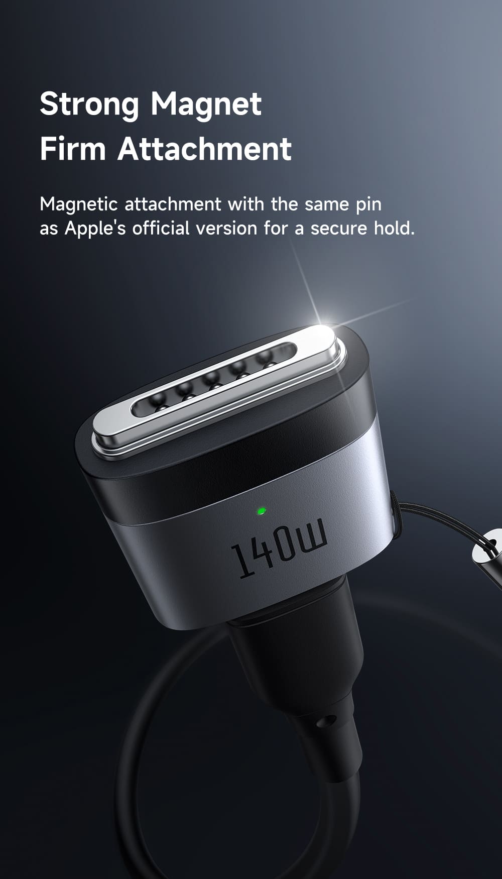 🚀 Hỗ Trợ Sạc Siêu Nhanh Công Suất Đỉnh Cao: Tương thích hoàn toàn với chuẩn sạc nhanh thế hệ mới nhất, hỗ trợ công suất lên đến 140W, đảm bảo nạp đầy năng lượng cho chiếc Mac của bạn với tốc độ tối đa mà không làm ảnh hưởng đến hiệu suất.