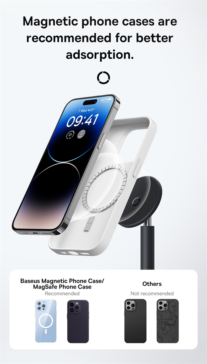 🧲 Hít Nam Châm Cực Mạnh & Nhanh Chóng: Chỉ cần đưa thiết bị lại gần, lực hút nam châm mạnh mẽ sẽ tự động hít và giữ chặt. Tương thích hoàn hảo với các dòng điện thoại và máy tính bảng có hỗ trợ từ tính.