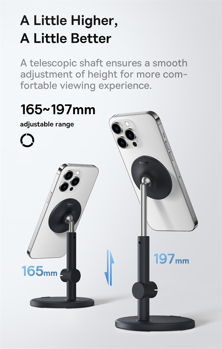 🔭 Tùy Chỉnh Độ Cao & Góc Nhìn Hoàn Hảo: Dễ dàng nâng hạ chiều cao của giá đỡ (từ 165-197mm) và xoay 360 độ để có được góc nhìn lý tưởng nhất, dù bạn đang ngồi hay đứng, sử dụng ở chế độ ngang hay dọc.