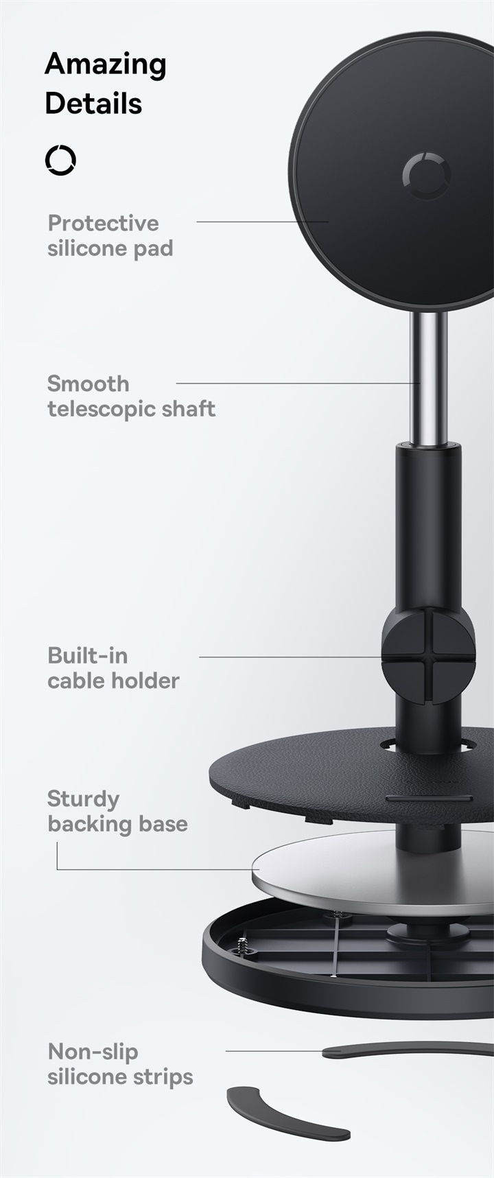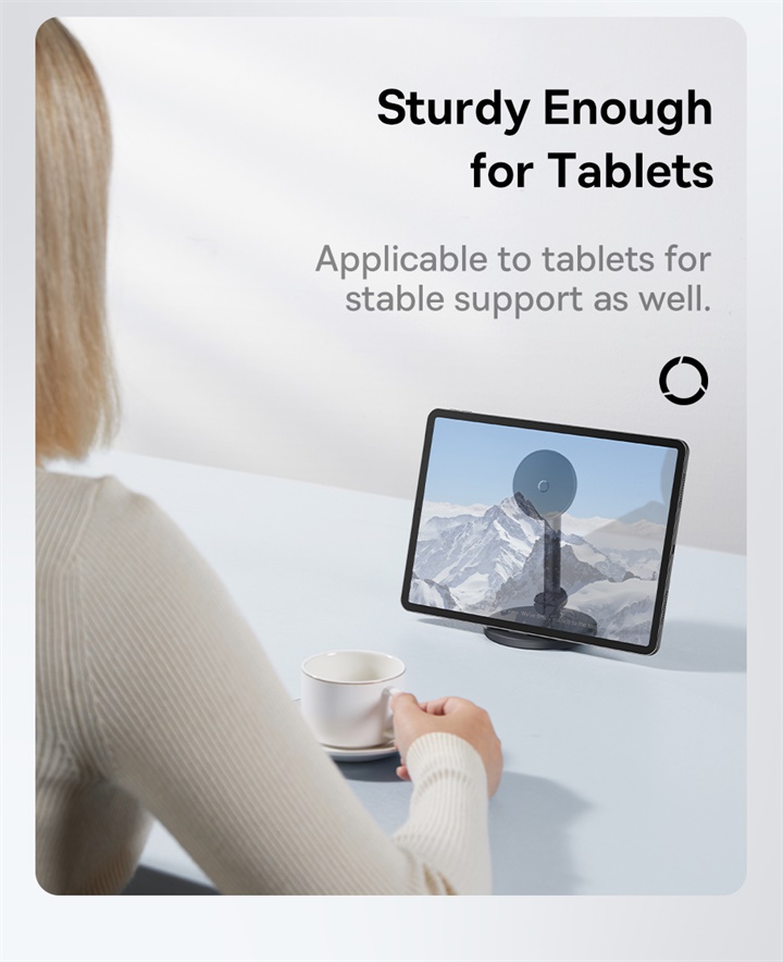 ○ Lực hút nam châm mạnh mẽ: Giữ chắc chắn cả điện thoại và máy tính bảng có hỗ trợ từ tính.