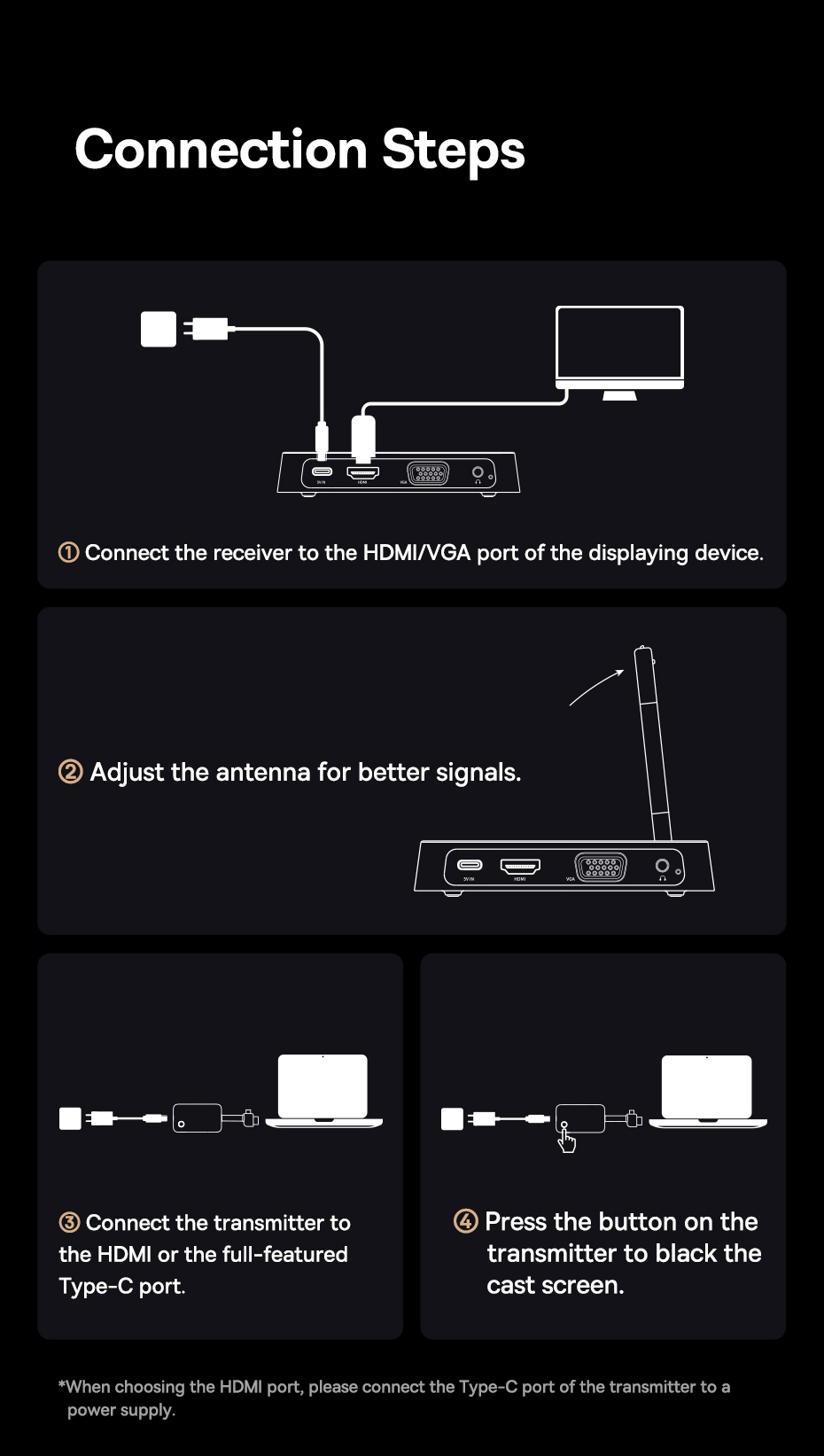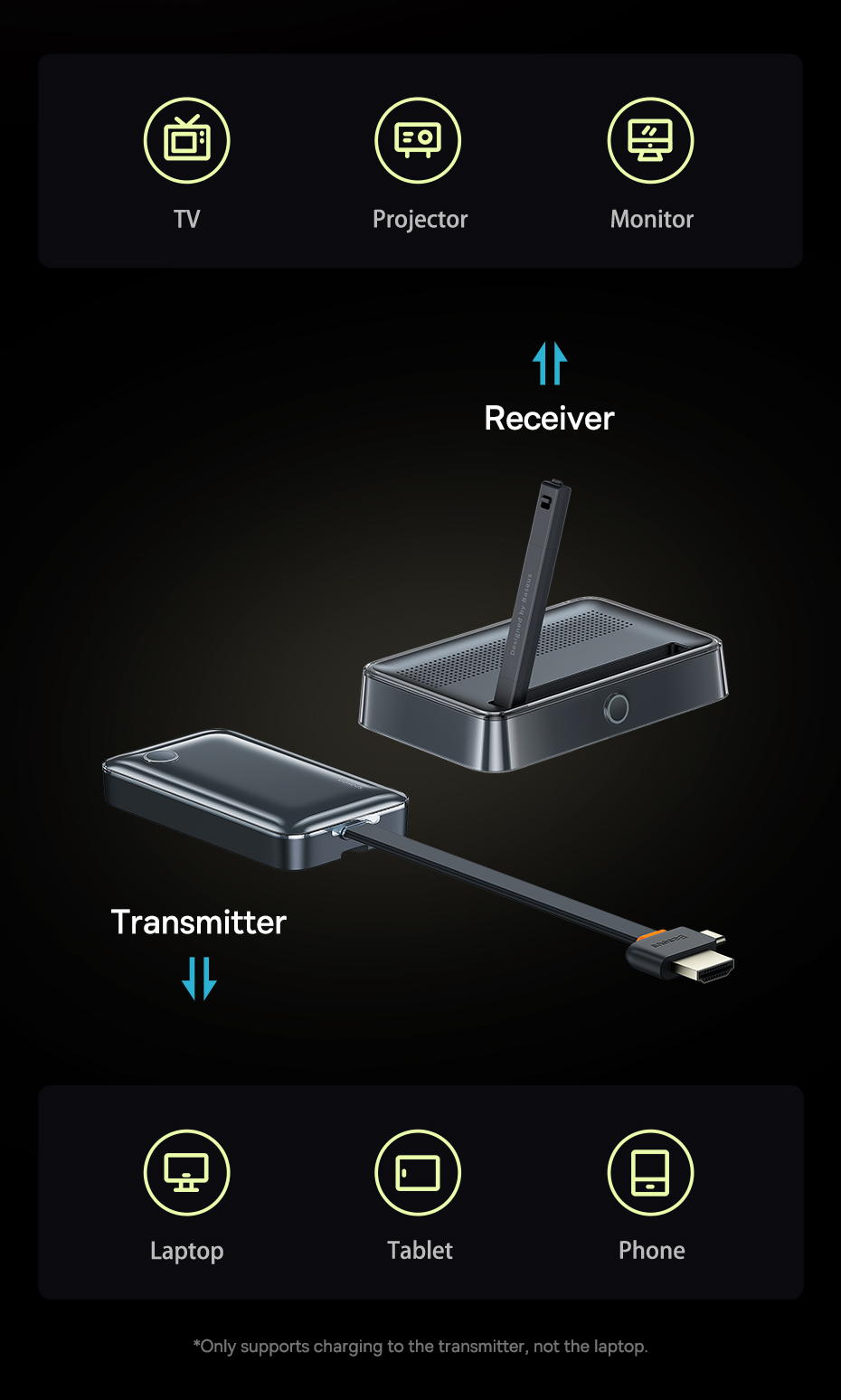 🔌 CẮM LÀ CHẠY - SIÊU DỄ SỬ DỤNG: Không cần cài đặt ứng dụng phức tạp. Chỉ cần cắm đầu phát vào thiết bị nguồn (điện thoại, laptop...) và đầu thu vào màn hình hiển thị (TV, máy chiếu...), kết nối nguồn cho đầu thu là có thể bắt đầu trình chiếu.