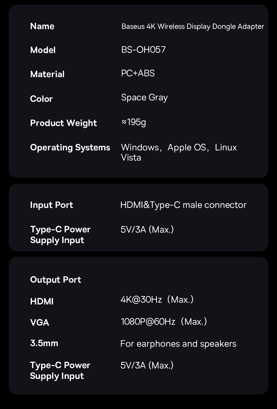 | Tên | Baseus 4K Wireless Display Dongle Adapter |