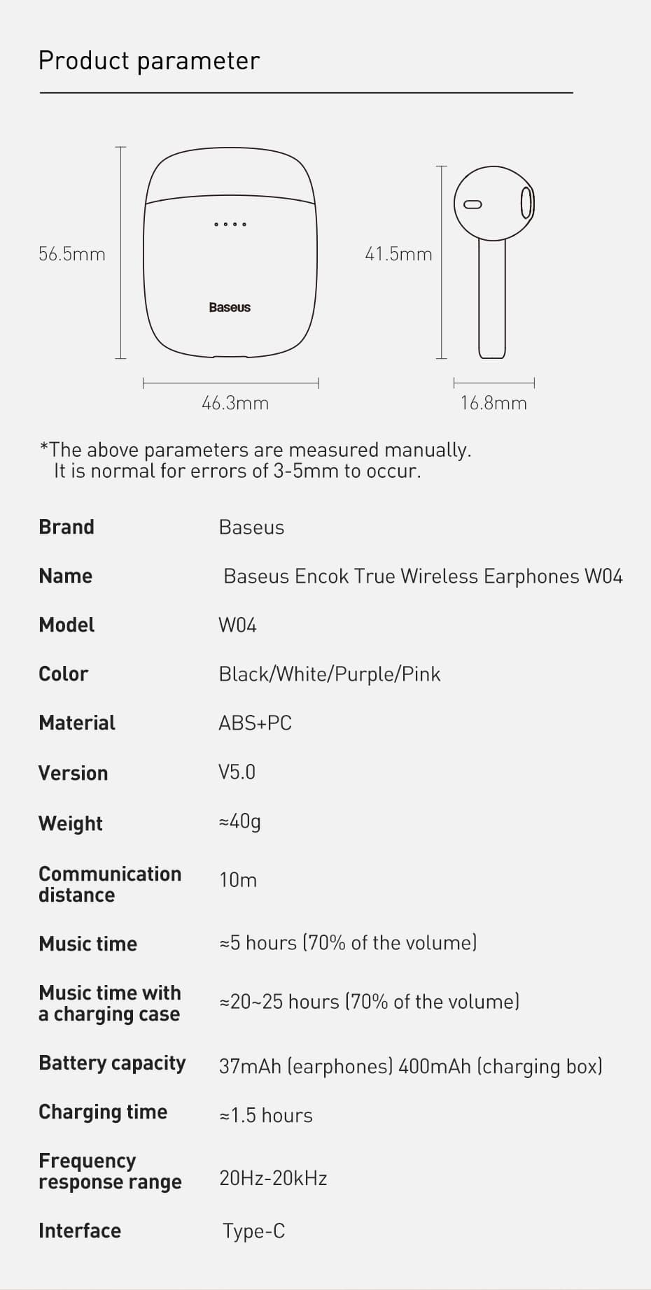 | Tên | Tai Nghe Bluetooth Baseus Encok W04 (3015E) True Wireless Earphones |