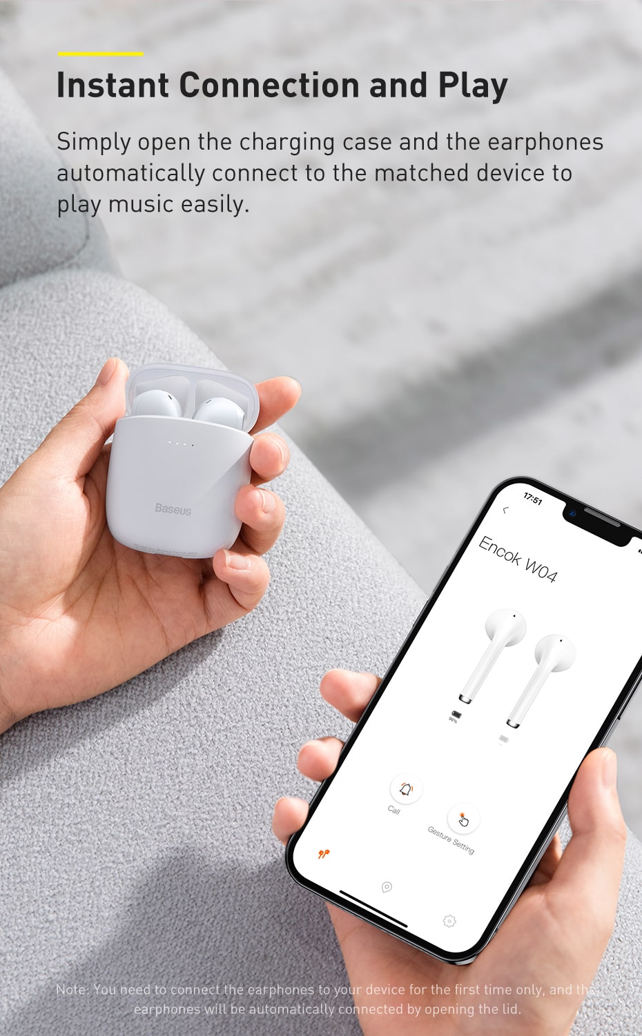 Tai Nghe Bluetooth Baseus Encok W04 (3015E) True Wireless Earphones là một lựa chọn tuyệt vời cho những người yêu thích âm nhạc và cần sự thoải mái và tiện ích trong việc sử dụng tai nghe.