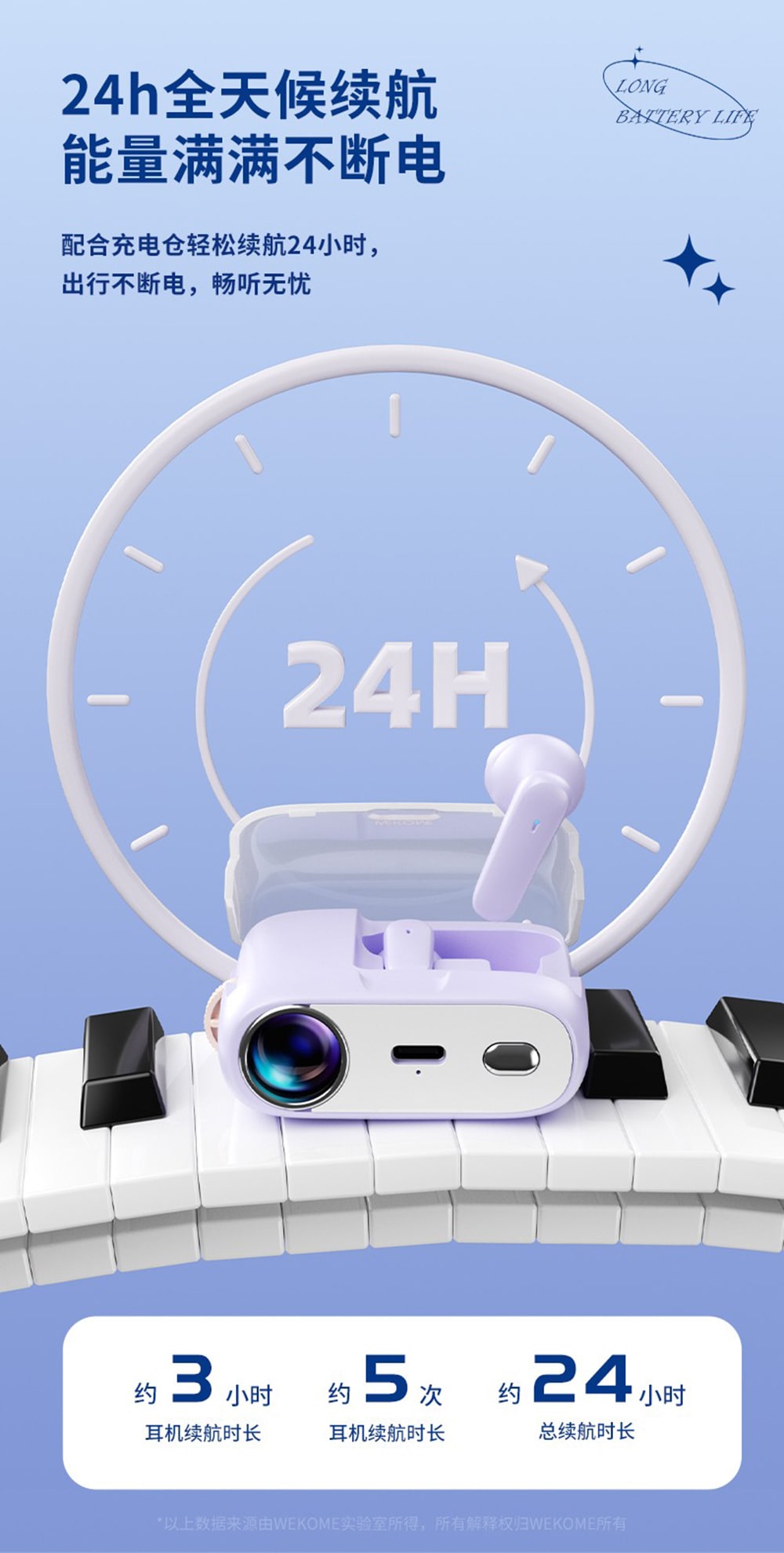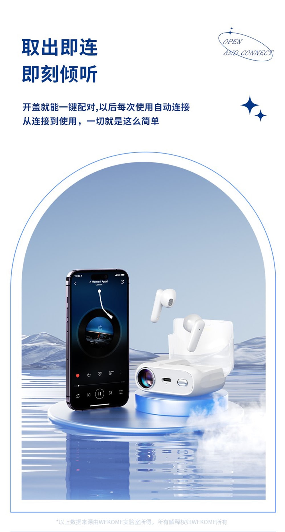 Tai nghe Bluetooth Wekome S28 Projector Wireless Earphone là một sản phẩm tai nghe không dây độc đáo của Wekome, với thiết kế độc đáo và tính năng đặc biệt. Dưới đây là một số điểm nổi bật của sản phẩm: