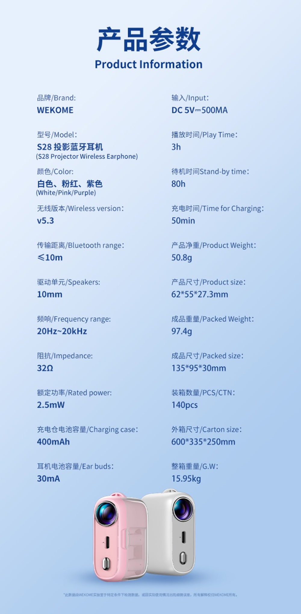 | Tên | Tai Nghe Bluetooth Wekome S28 Projector Wireless Earphone |